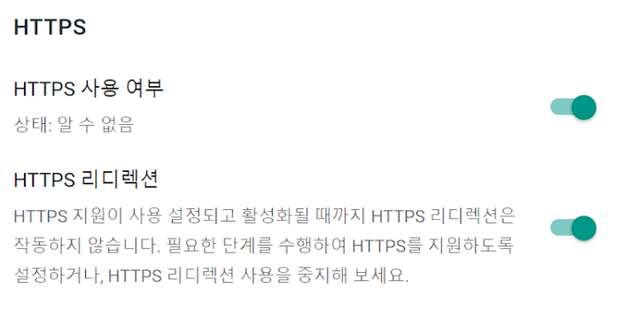 여기에서는 잠깐 멈췄다가 2)번 가비아 설정을 완료한 후에 저장을 누르시고 HTTPS 사용 여부를 켜줍니다.
