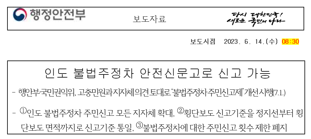 1. 인도 불법주정차 주민신고 모든 지자체 확대