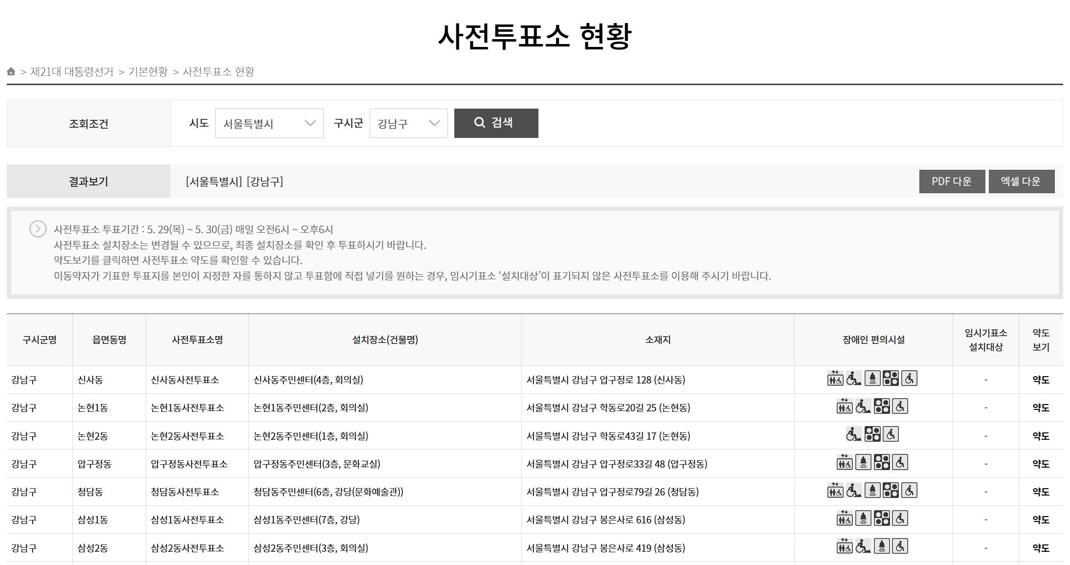 지역별로 사전투표소를 쉽고 빠르게 확인할 수 있습니다.