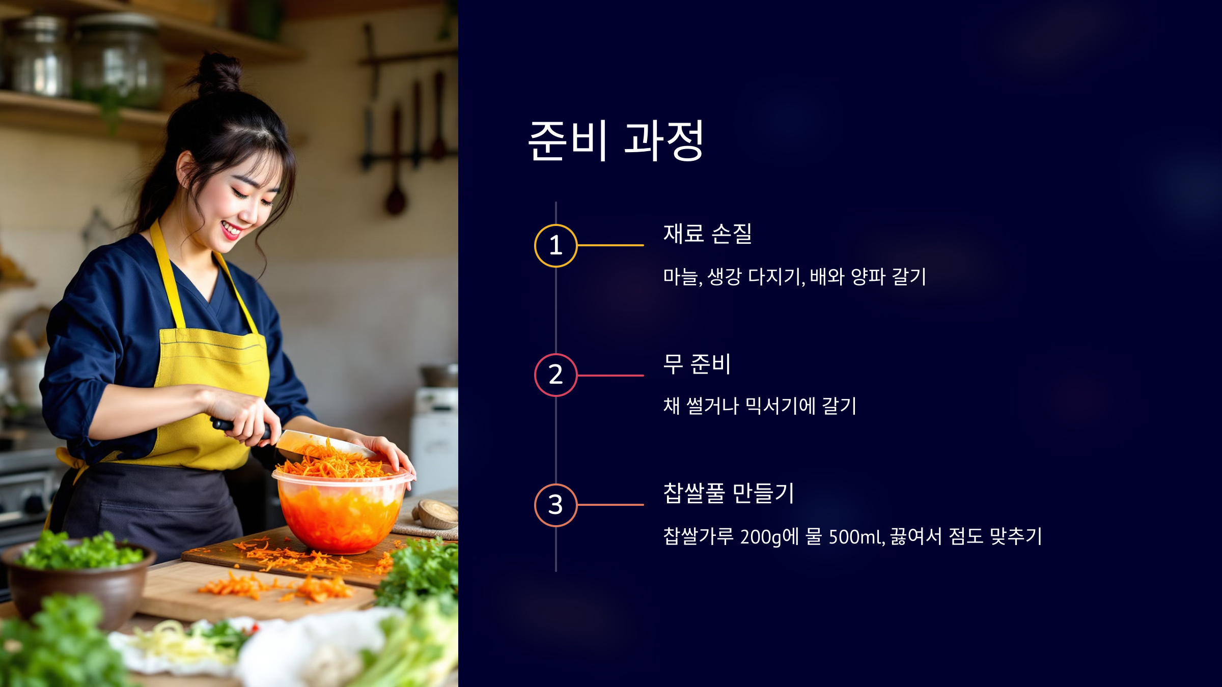 특히 고춧가루, 마늘, 생강, 새우젓 등은 신선하고 품질이 좋은 것을 사용하세요.
