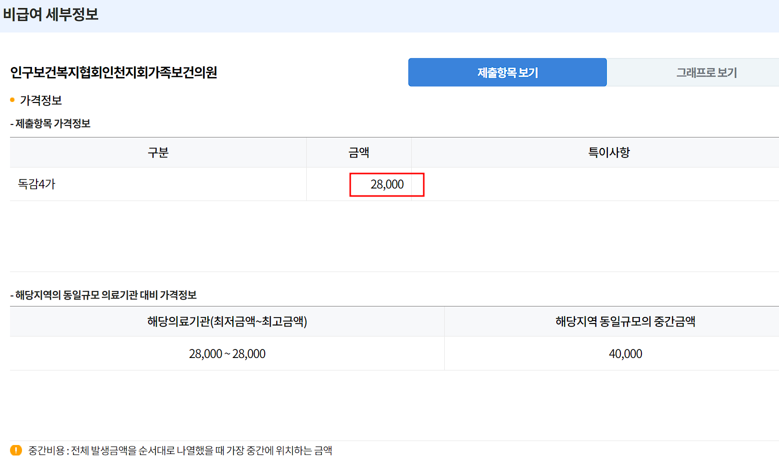 병원 목록이 나오면 세부정보의 세부를 클릭하여 독감주사 가격을 확인하실 수 있습니다.