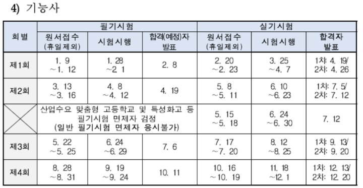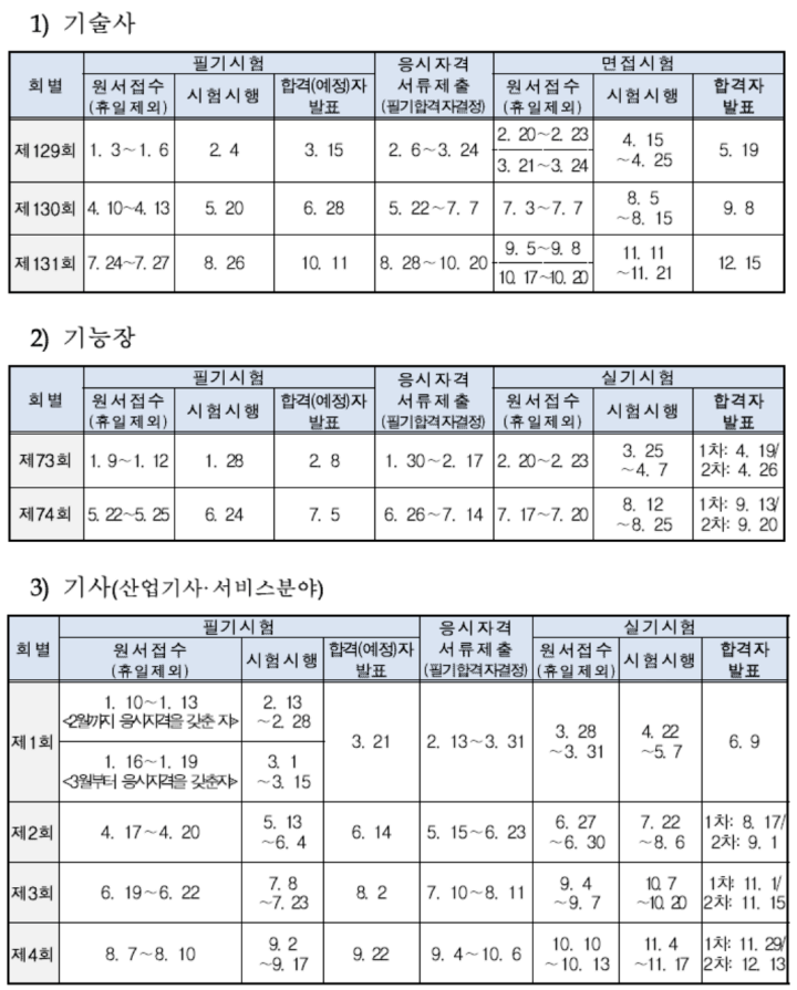 ※ 종목 별 시행 일정이 상이하므로 해당 종목의 등급 및 종목별 시행 회를 확인하시기 바랍니다.